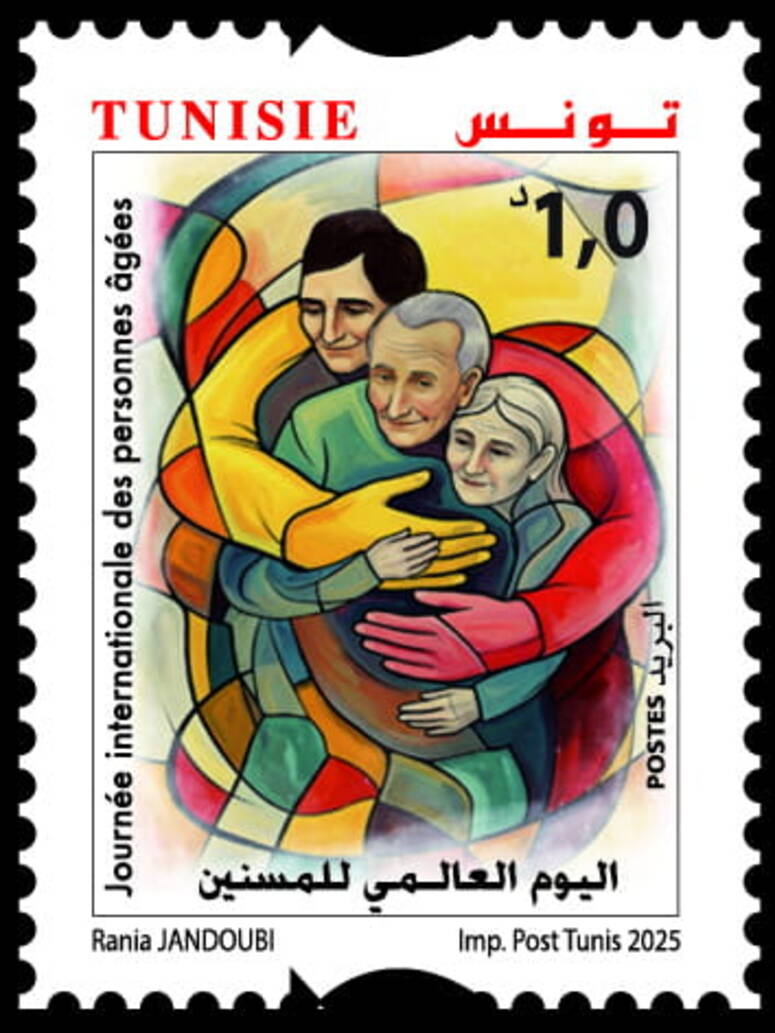 أصدر البريد التّونسي بالتّعاون مع وزارة الأسرة والمرأة والطّفولة وكبار السّنّ، يوم غرّة أكتوبر 2025، طابعا بريديّا بمناسبة إحياء بلادنا لليوم العالمي لكبار السنّ، انسجاما مع الإرادة الوطنيّة الثاّبتة لإعلاء مكانة أمّهاتنا المسنّات وآبائنا المسنّين وتأكيدا لمنزلتهم في سلّم أولويّات المشروع المجتمعي لتونس وخياراتها الاستراتيجيّة.